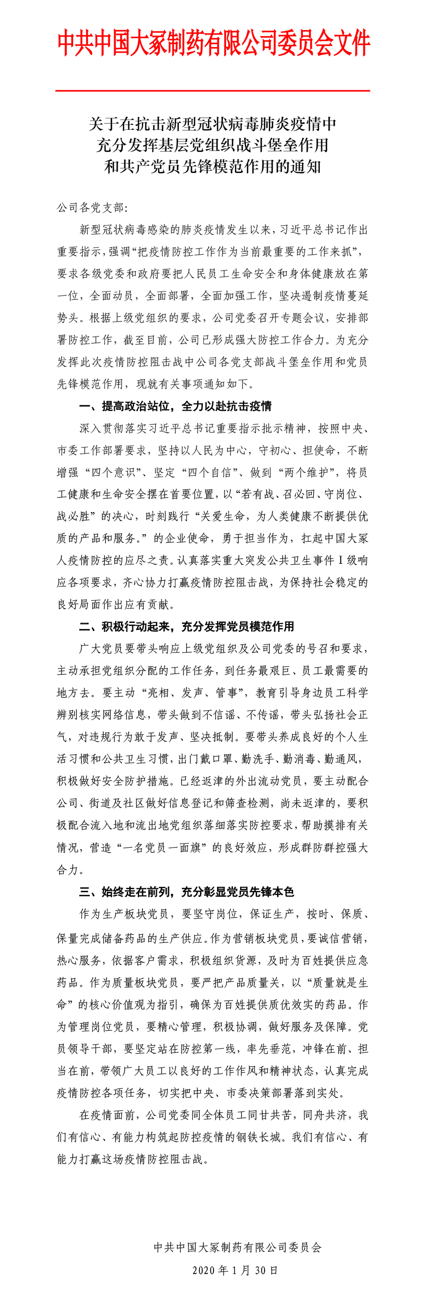 關(guān)于在抗擊新型冠狀病毒肺炎疫情中充分發(fā)揮基層黨組織戰(zhàn)斗堡壘作用和共產(chǎn)黨員先鋒模范作用的通知