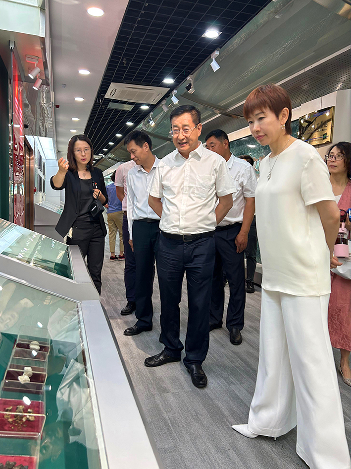 ? ? ? ?董增賀一行在張銘芮的陪同下,先后參觀了津藥達仁堂展覽館和達仁堂自然人文陳列館,細致了解津藥老字號傳承創新發展史,仔細查看館藏名貴中藥材,聽取津藥達仁堂艱辛付出推動中藥事業發展的背后故事,對其勾勒出的可持續發展新圖景和津藥人展現出的敢為人先、勇辟新徑的勇氣表示肯定和贊賞。