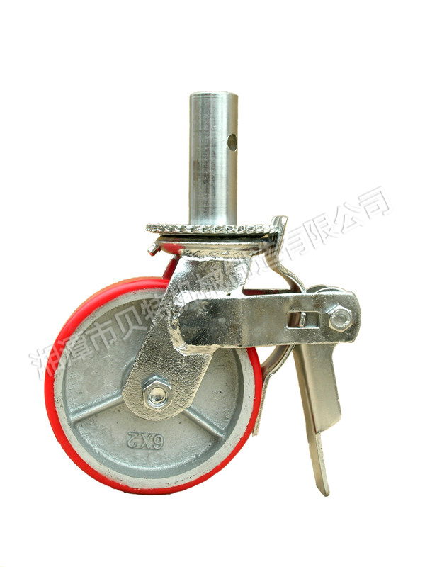 腳手架腳輪一般用的是6寸的輪子,規格與mm的計算是,1尺=20mm,6寸的輪子也就是說130MM,以其,腳手架的凈重,有4個輪子承重,依據輪子的材料而算的,一般用的輪子有4,寸,5寸,6寸和8寸。輪子的優劣,在于常用輪子材料的優劣,注塑加工特性的輪子,原包料不然再次用材價錢貴幾元。為其安全性無誤,最好是用性價比高的輪子。略微好點的輪子就是說聚氨酯腳手架腳輪,耐磨性能好。